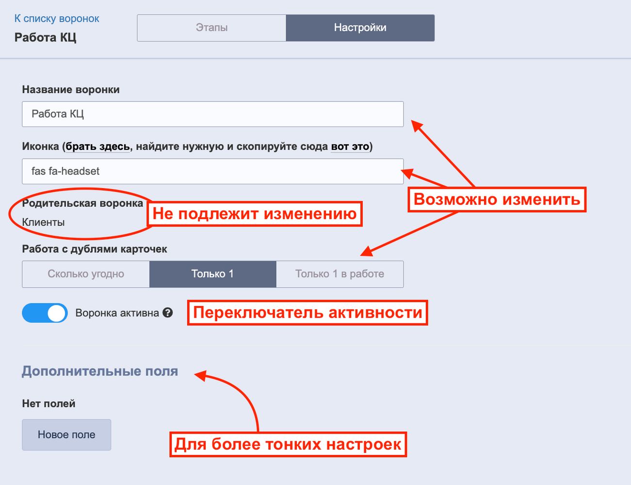 ВАЖНО! Связь с родительской воронкой создается единожды — в момент создания дополнительной воронки и не подлежит изменению в дальнейшем.
