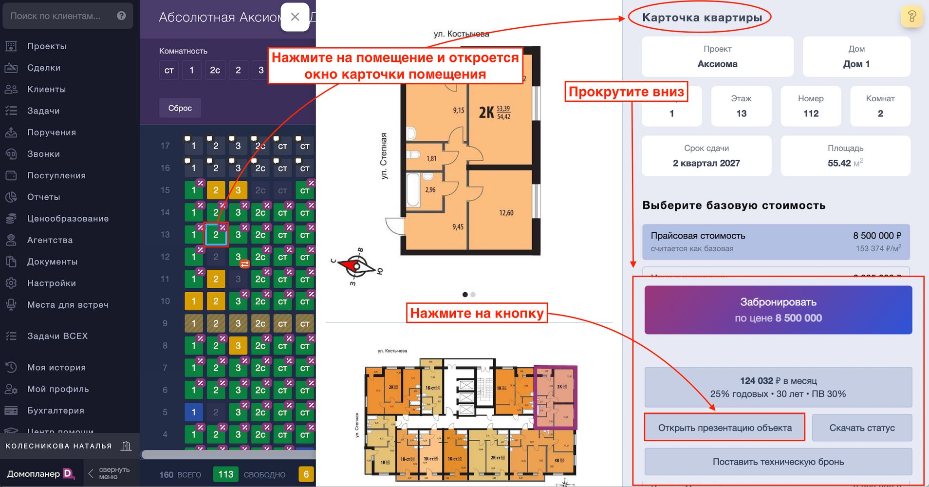 Внутри карточки объекта в разделе Проекты есть ссылка на презентацию.
