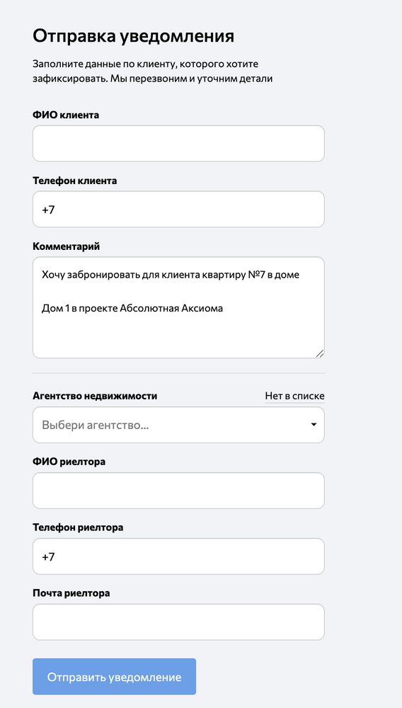 В результате, в каталоге при фиксировании для агентств будет работать специальная форма с заданными вами текстами: