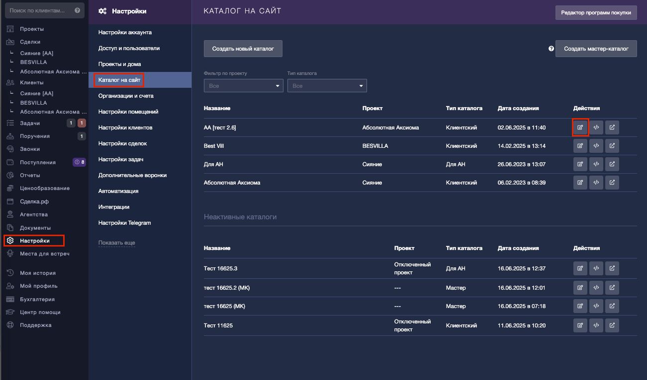 Важно! Для того чтобы каталог открылся на вашем сайте, в настройках каталога нужно прописать ссылку на ваш сайт.