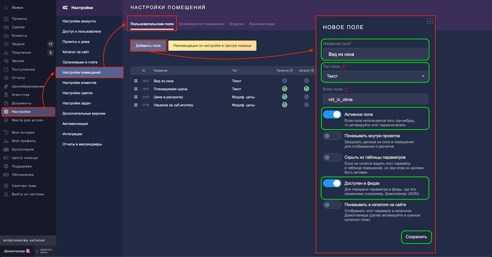 Чтобы добавить в фид дополнительные поля для помещений, выполните несколько простых шагов: