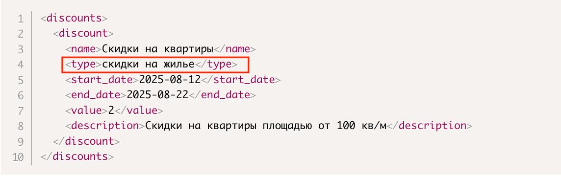 Домклик позволяет передавать значительно больше информации, чем предусмотрено в стандартном фиде. Помимо характеристик помещений, в выгрузку можно включать данные на уровне проектов, домов и даже акций.