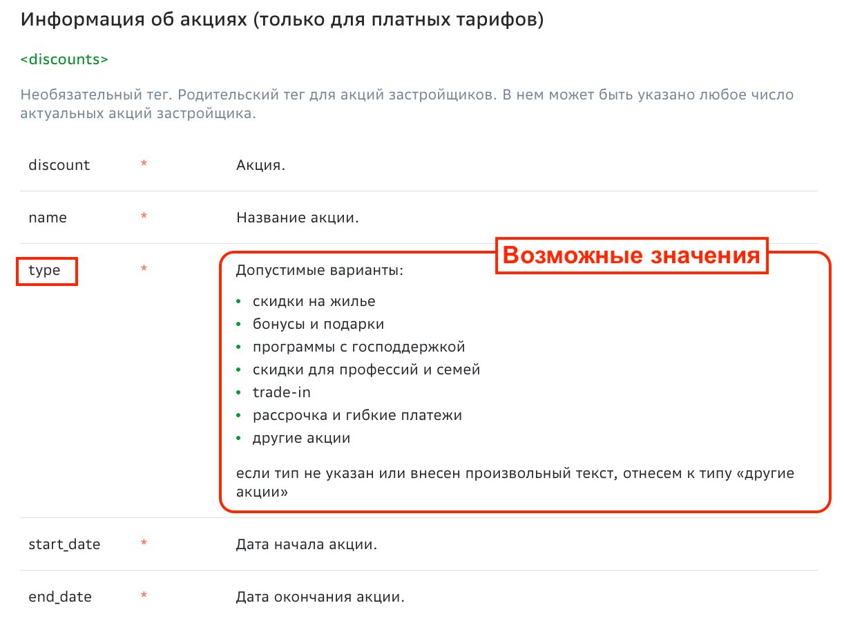 КАК ЭТО РАБОТАЕТ: Для всех акций, у которых заполнено дополнительное поле DC_type, мы автоматически вставляем указанный тип акции в фид при выгрузке в Домклик: