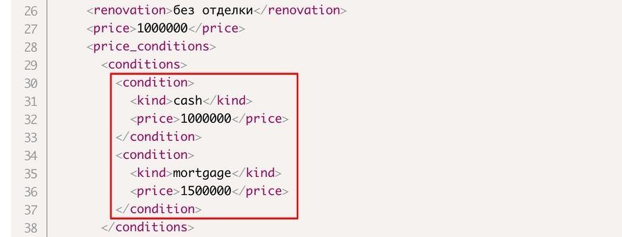 В фиде Домклик можно передать дополнительные значения цены к помещению помимо основной. Поддерживается два типа: