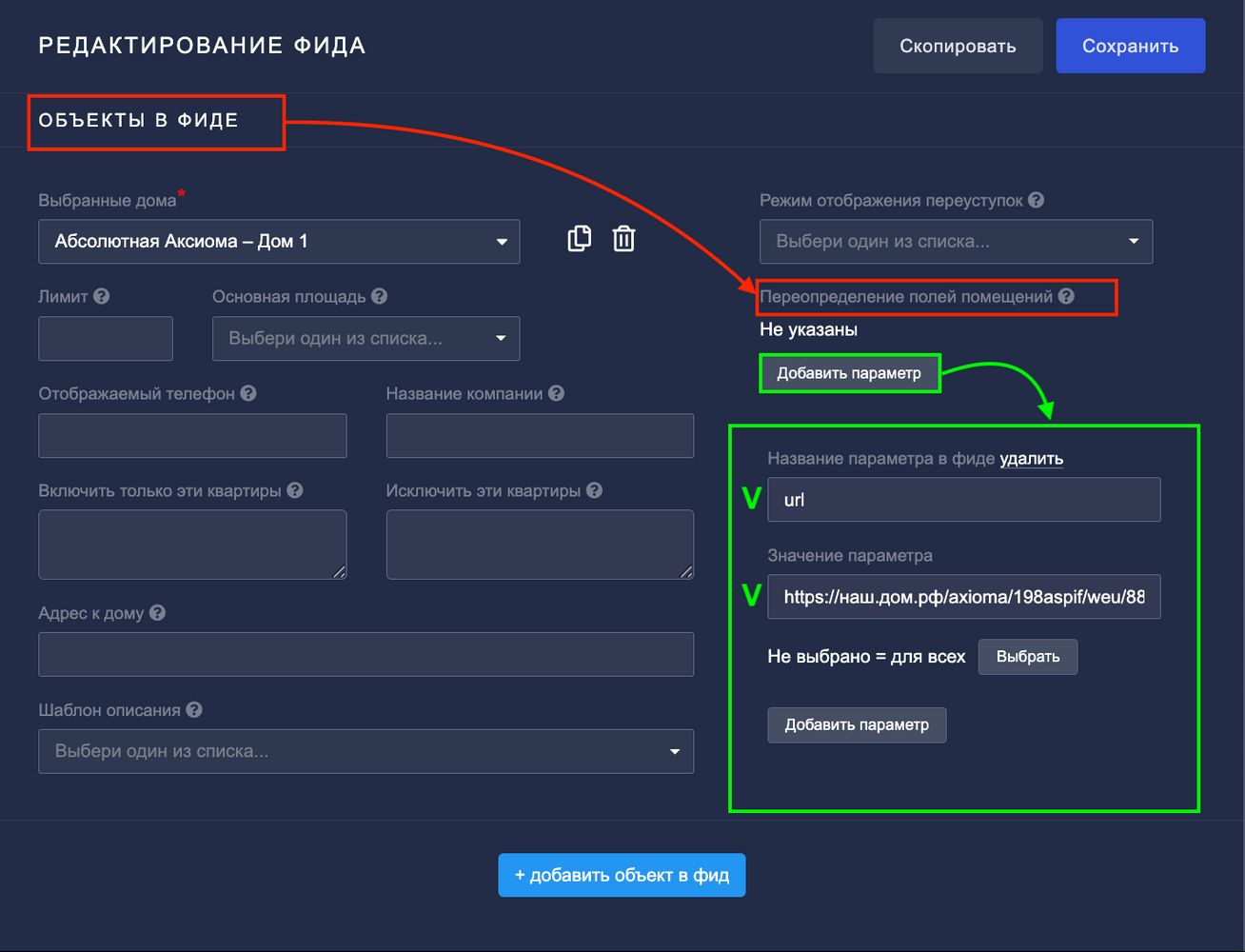 ВАЖНО! один объект (ЖК) - это один фид.