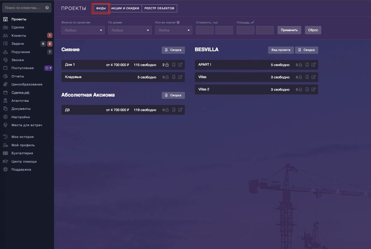 Фиды – особый вид интеграции, позволяющий синхронизировать стоимость и статусы ваших помещений с внешними источниками: агрегаторами, агентствами и сайтами.
