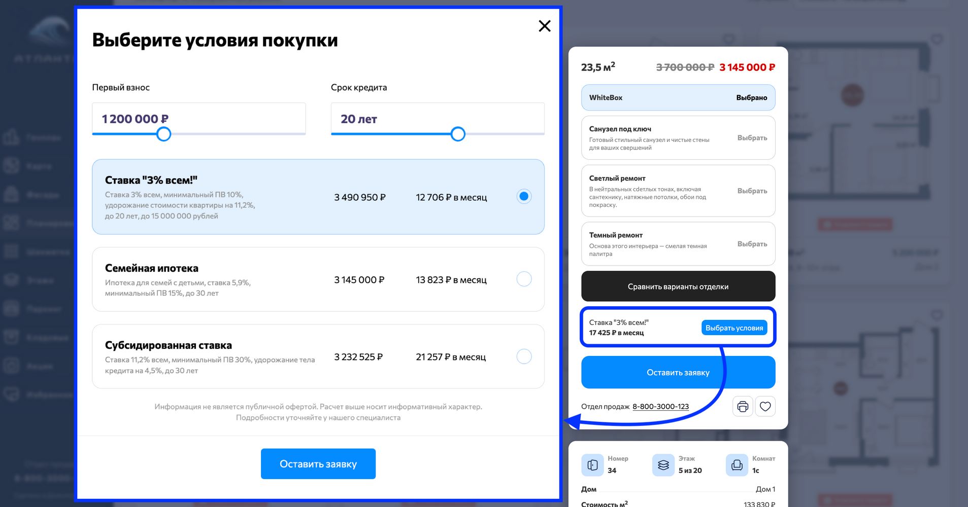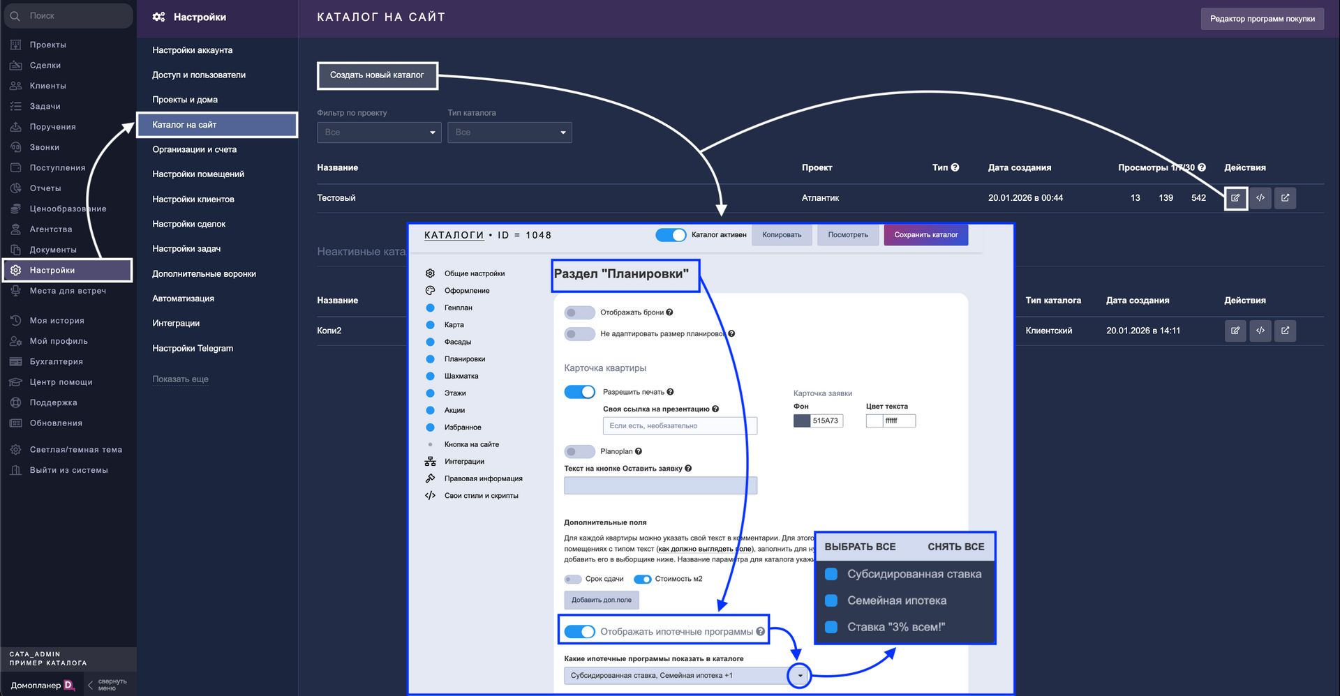 Чтобы предложения по ипотеке отображались в карточках квартир, выполните следующие шаги: