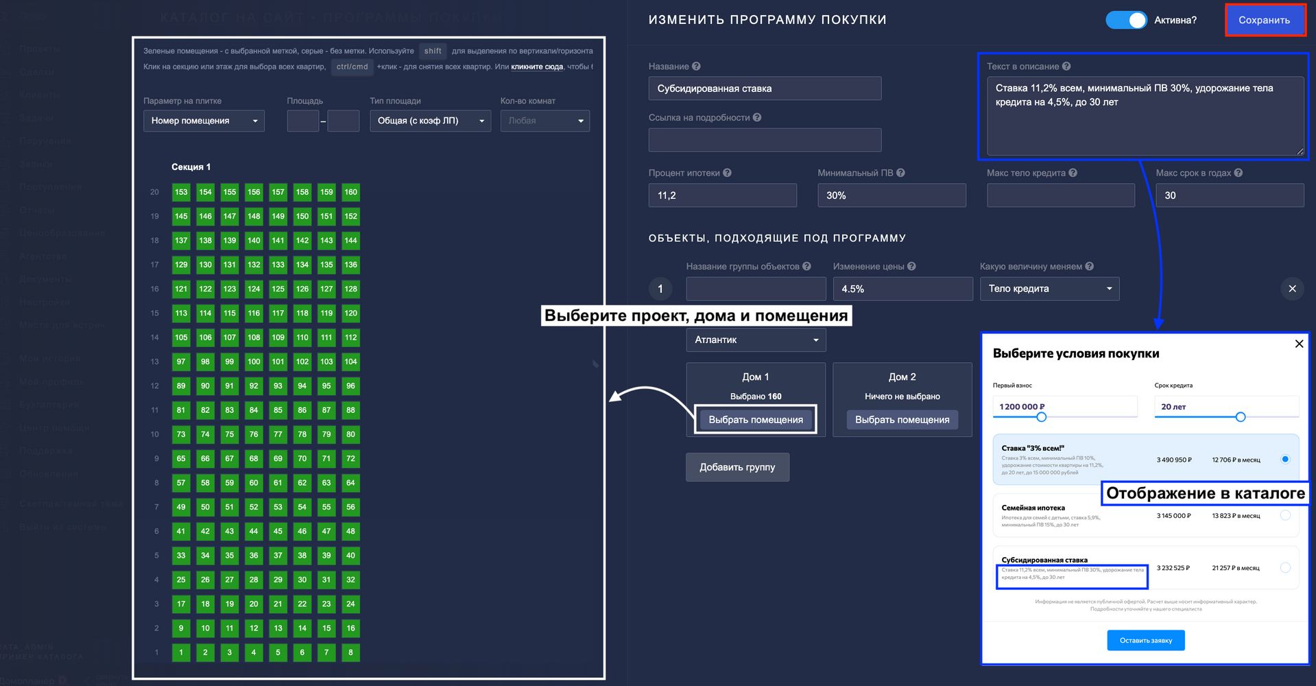 После сохранения программа станет доступна для выбора в карточках соответствующих квартир.