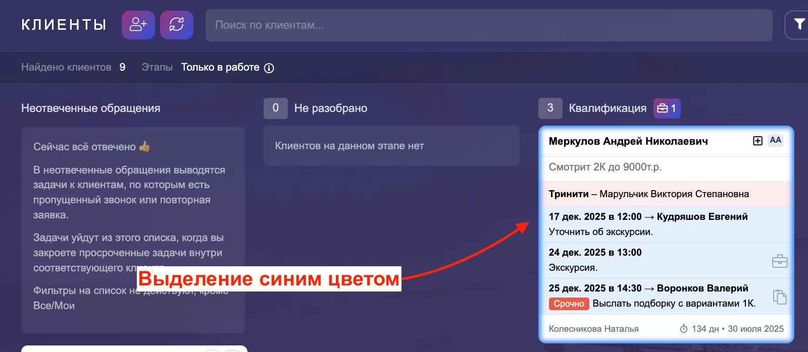 — Как учитывать клиентов с задачами и влияют ли они на сортировку