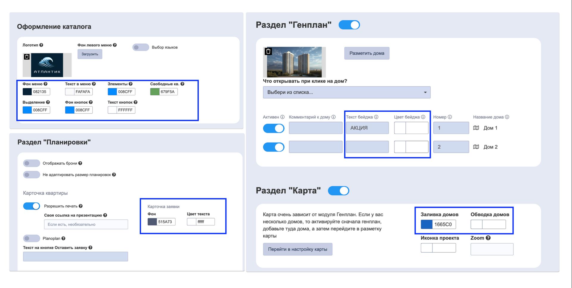 — Гибкость под ваши нужды: Хотите, чтобы каталог был в ваших фирменных цветах? Дома назывались корпусами? Отображались только конкретные разделы в каталоге? Все это можно сделать в несколько кликов.