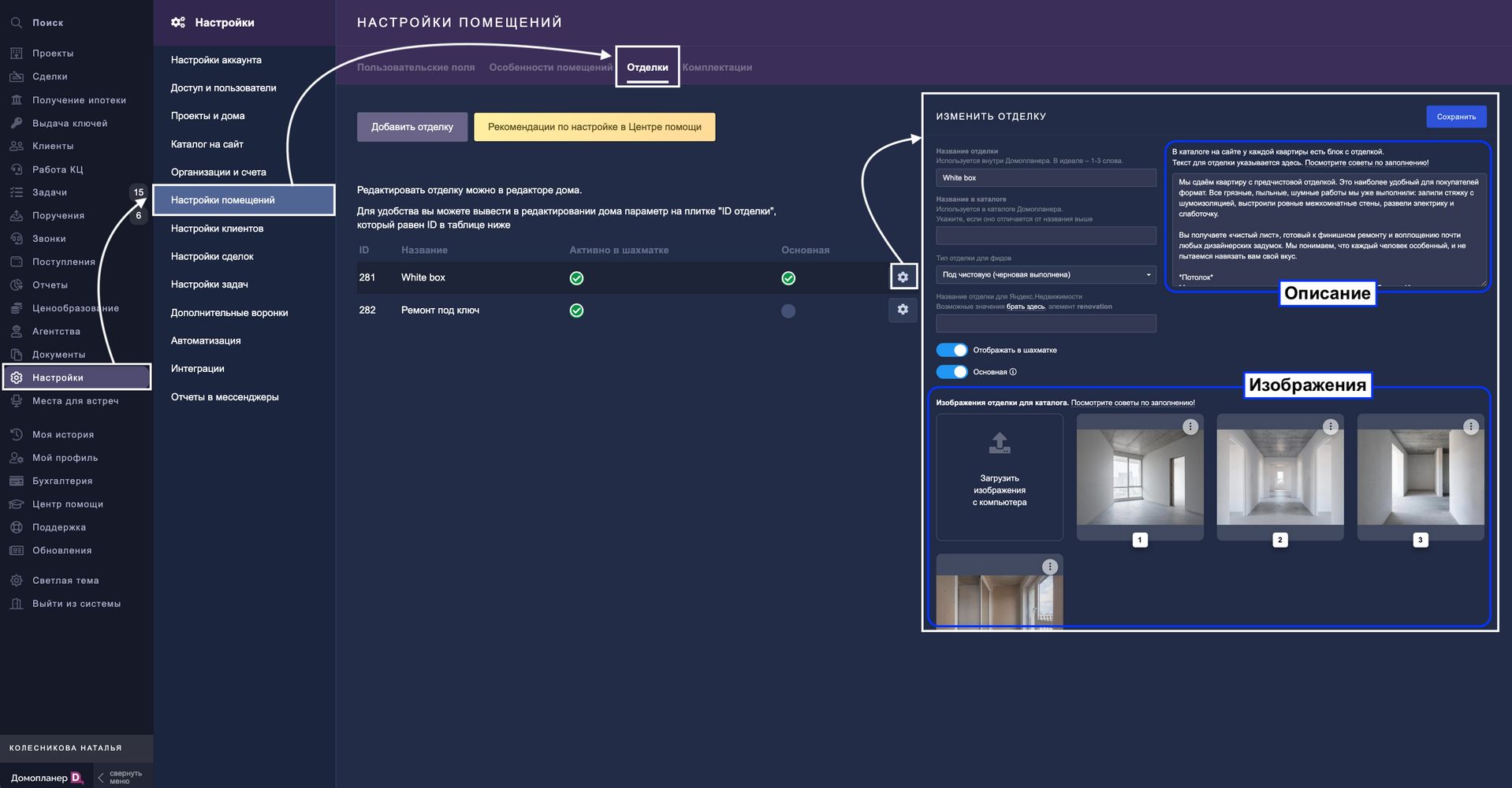 Для этого пройдите в НАСТРОЙКИ — Настройки помещений — Комплектации — Создать новую или редактировать уже существующую: