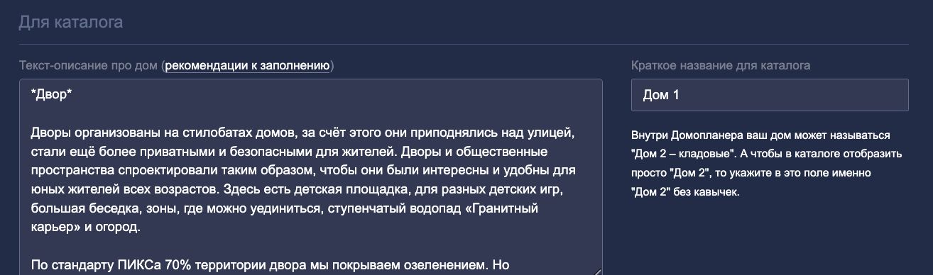 Описание отображается в каталоге, в карточке помещения. Также укажите номер дома, который будет виден в каталоге.