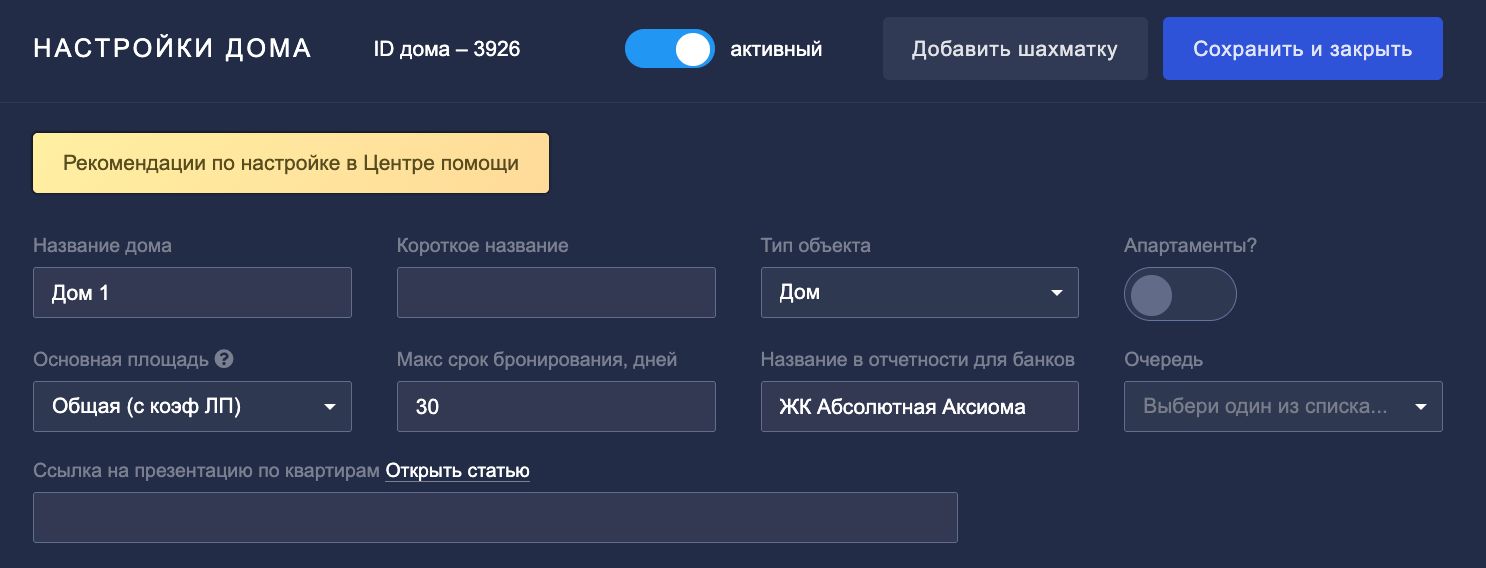 — Название в отчетности для банков — указывается название дома для банковской отчетности.