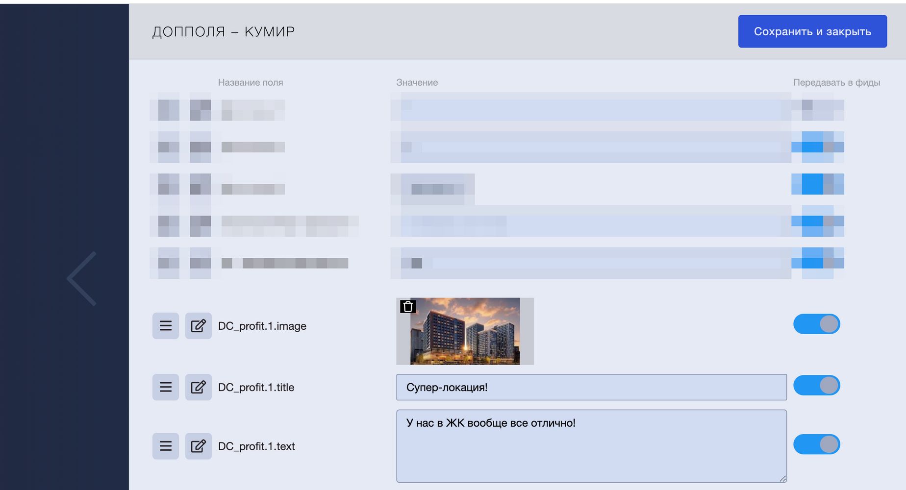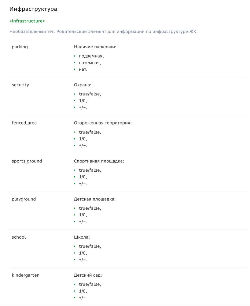 В фиде Домклика есть поле инфраструктуры у каждого проекта. Внутри есть ряд полей с типами инфраструктуры. Изначальное состояние этого поля, которые мы передаем по умолчанию: