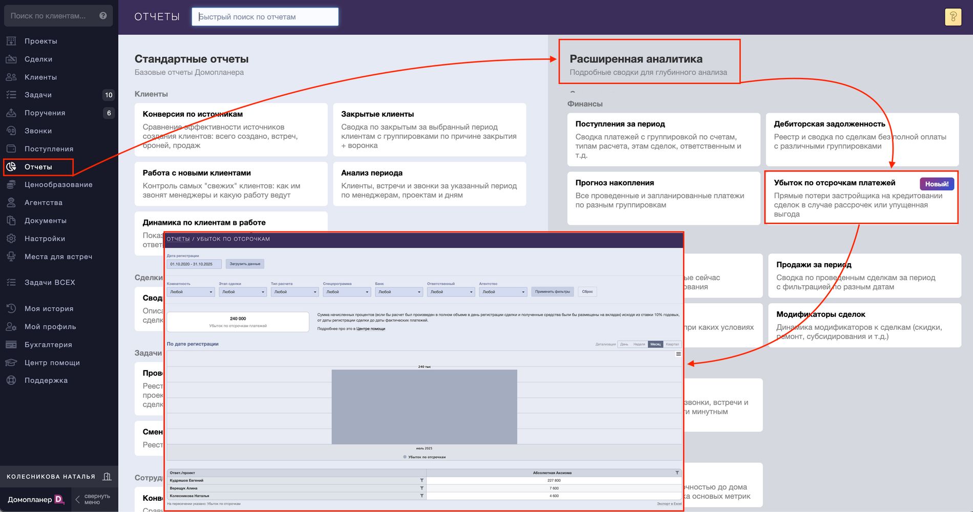 3. В разделе ОТЧЕТЫ — Расширенная аналитика — Финансы — Отчет "Убыток по отсрочкам платежей" — наглядно продемонстрирует, как отсрочки платежей влияют на вашу прибыль. Подробнее про отчет здесь.