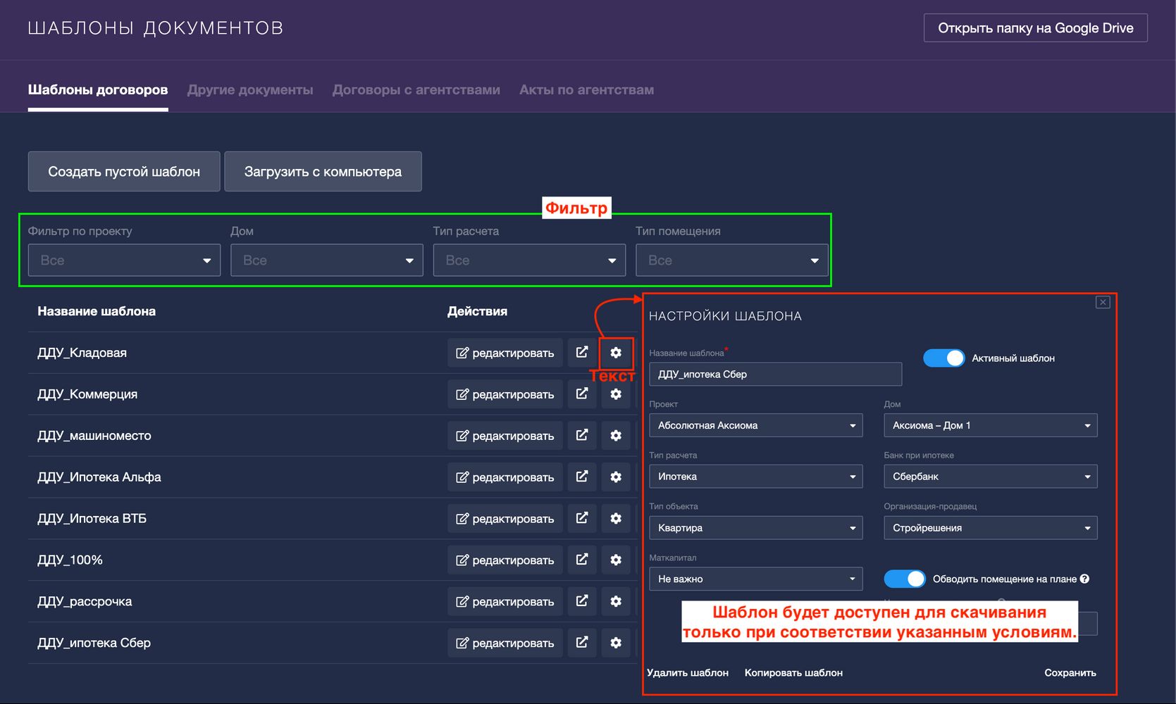 — Кроме того, в настройках каждого шаблона можно ограничить область его применения. Это позволит при скачивании документа выбирать не из всех шаблонов, а только из релевантных вашему сценарию.