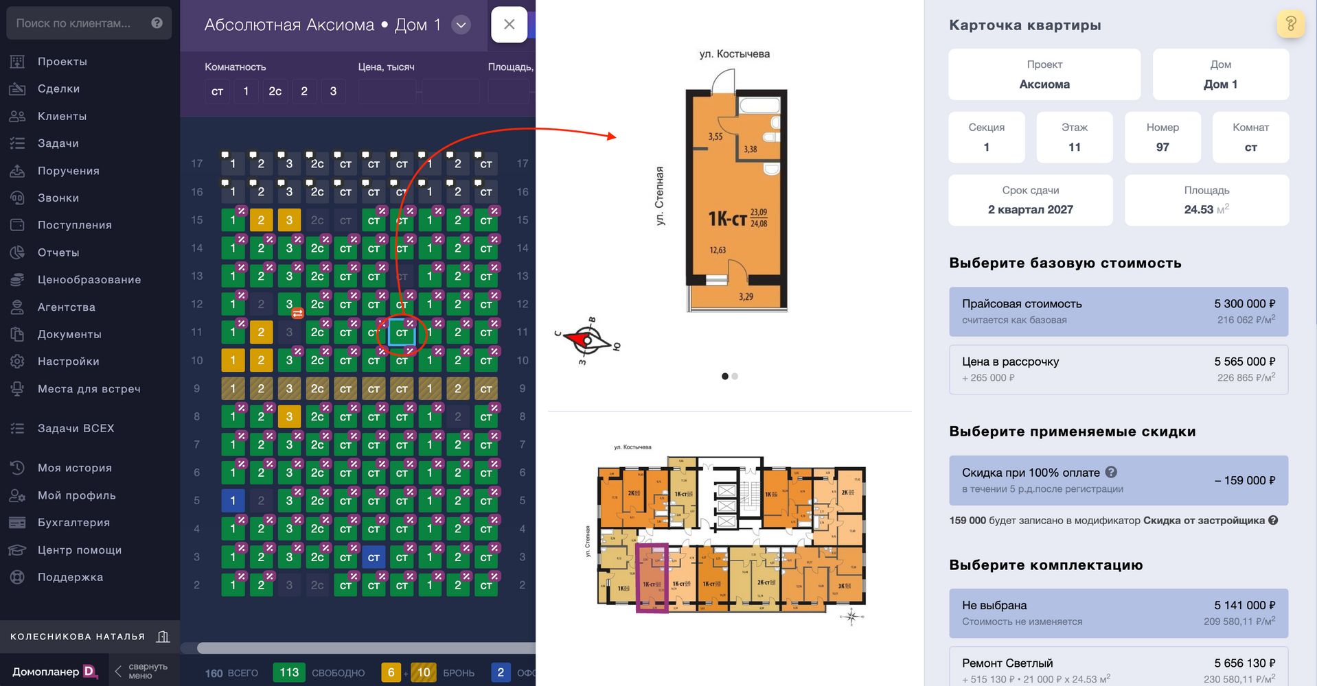 После замены планировок, проверьте изменения в шахматке — наведите курсор или кликните на помещение, должно появиться новое изображение.