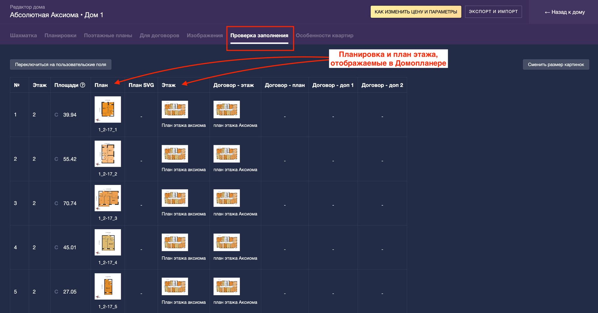 После замены плана нужно проверить, остались ли полигоны на своих местах, иначе разметка планировок на этажах в каталоге и презентации объекта может сместиться.