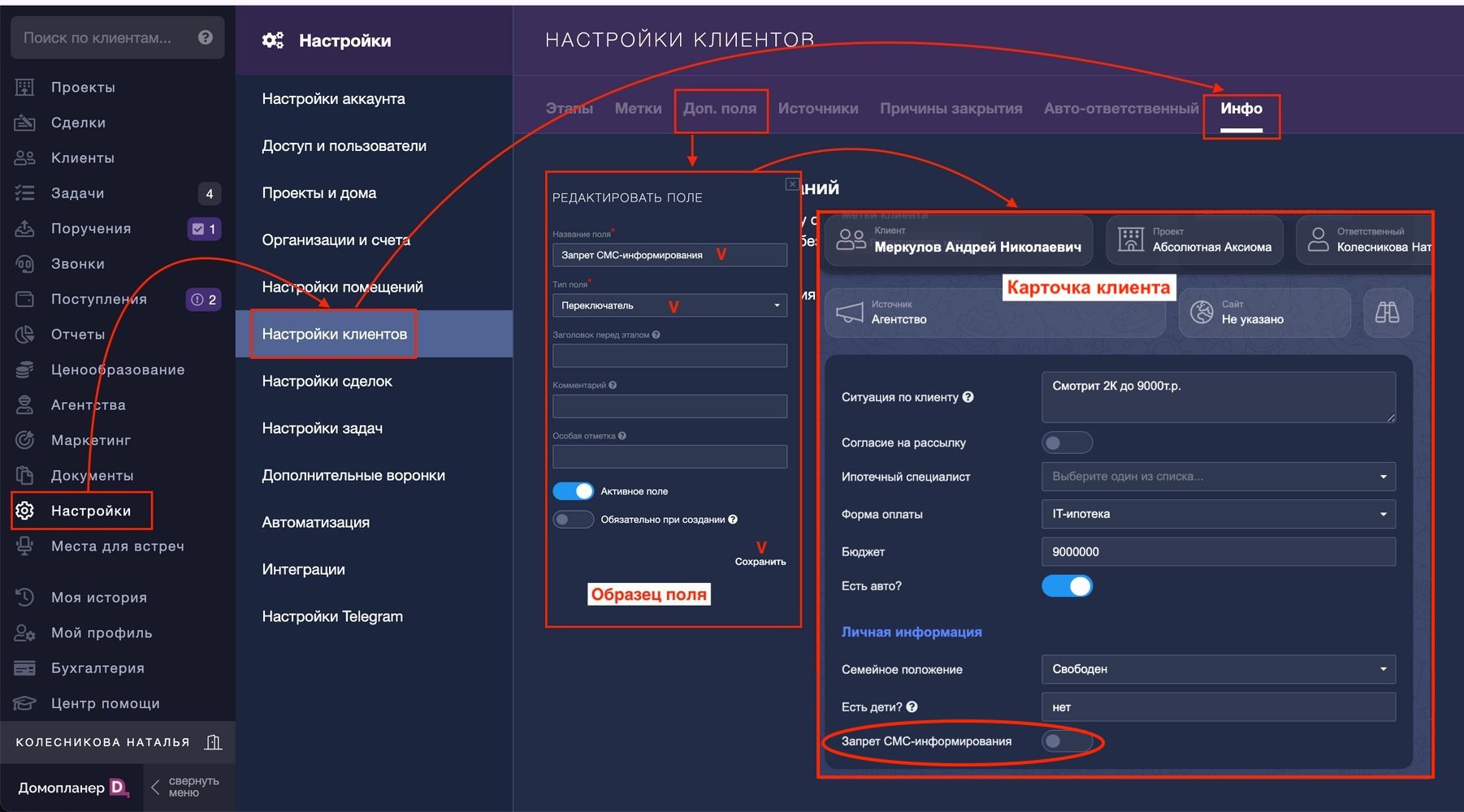 В Домопланере есть инструменты для работы с клиентами, которые можно настроить под ваши задачи. Давайте разберём основные функции и их настройку.