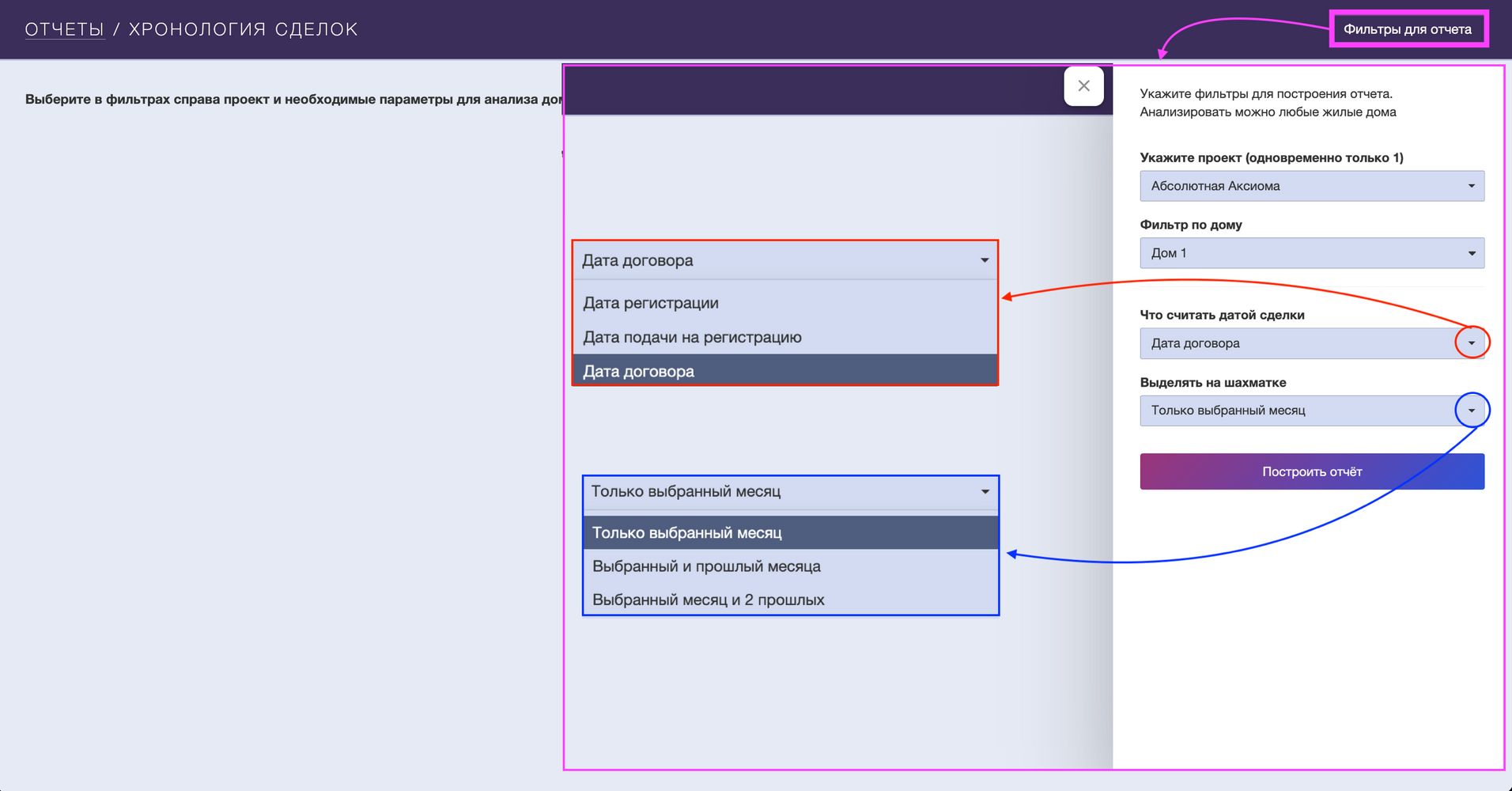 Отчёт "Хронология сделок" — это мощный аналитический инструмент, который нужен для того, чтобы визуально отследить картину продаж объекта недвижимости в динамике.