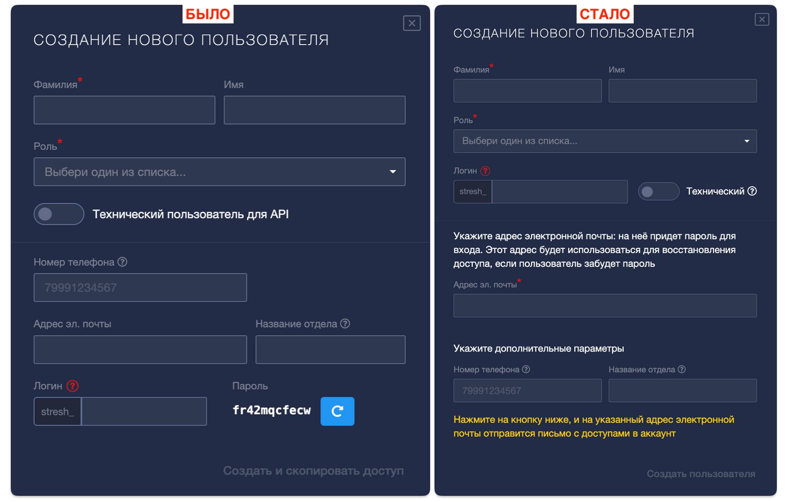 1. При создании нового пользователя больше нет готового пароля.