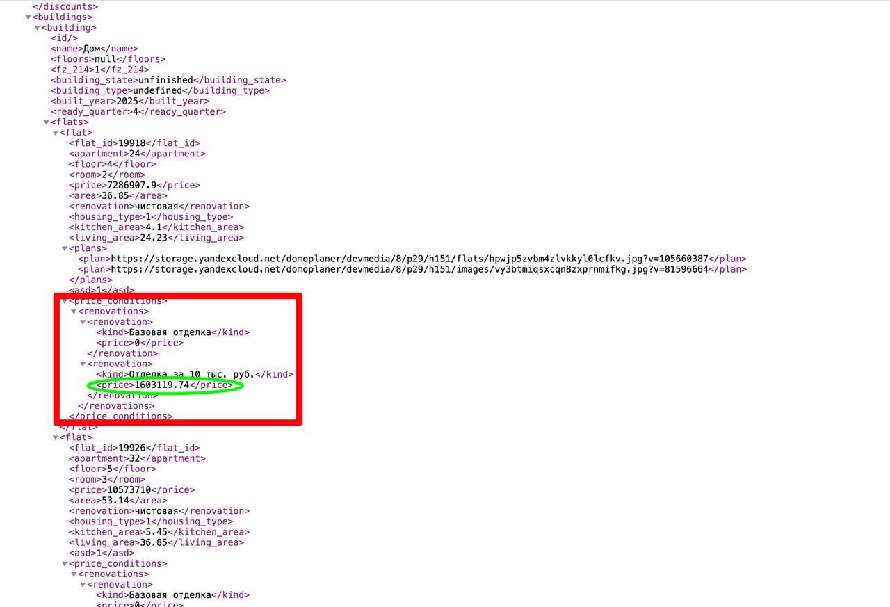 Расширена возможность передачи данных в фиды Домклика по новостройкам — теперь доступна передача массива стоимости комплектаций к помещениям.
