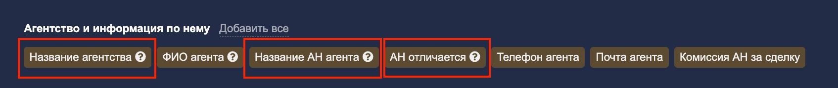 В настройках экспорта данных появились новые поля в категории "Агентства". Теперь вы можете включать в выгрузку дополнительную информацию: