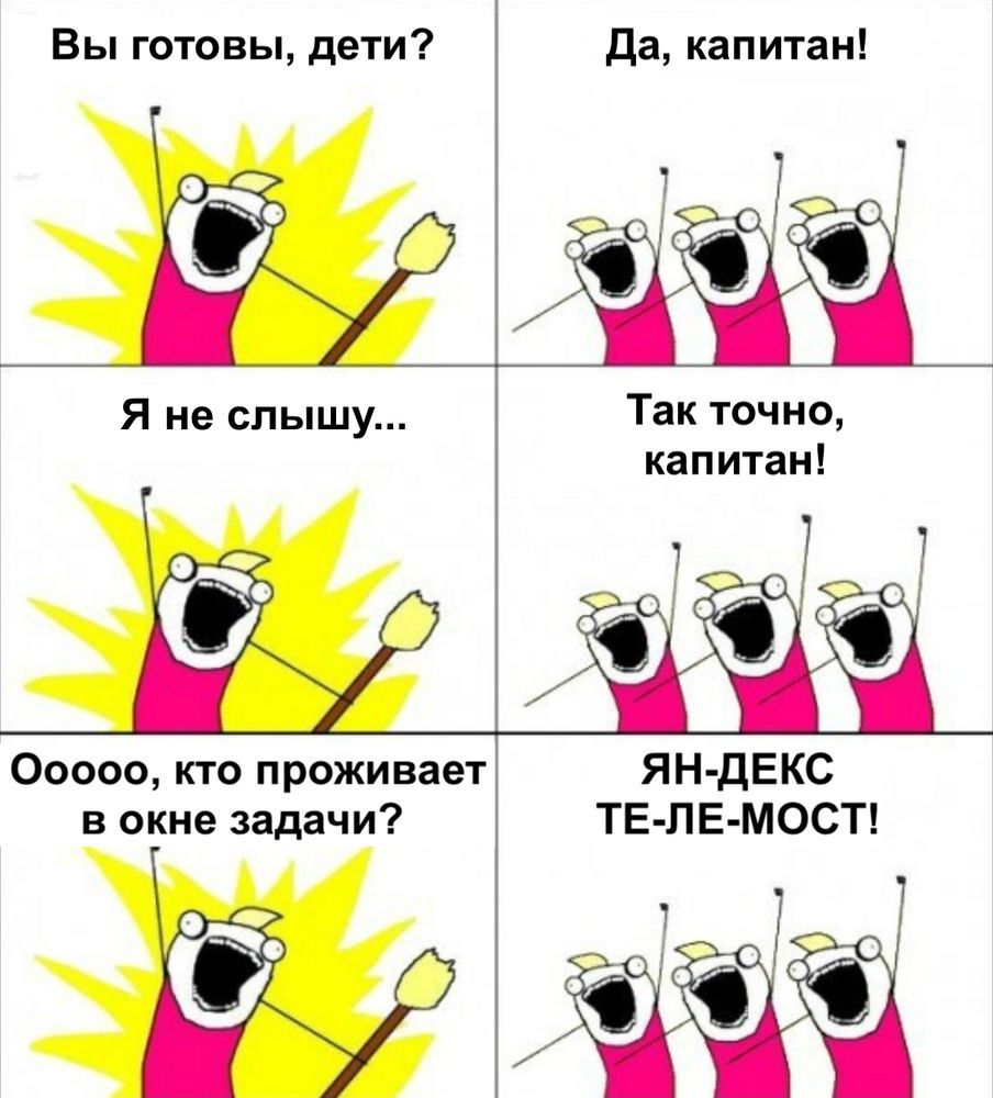 Чтобы начать, откройте задачу, в контексте которой нужно провести обсуждение, нажмите кнопку "Создать встречу" и в течение нескольких секунд Яндекс Телемост автоматически создаст конференцию: