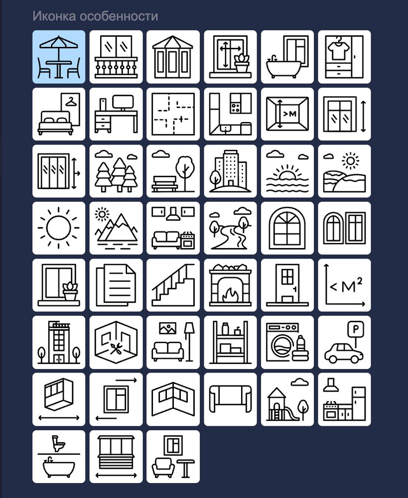 И хотя мы и предлагаем свое видение, вы абсолютно свободны в трактовке! Видите в иконке террасы "личный курорт", а в иконке французский балкон — "портал в небо"? Прекрасно! Используйте эти ассоциации, чтобы ваши описания заиграли новыми красками и стали ближе клиенту.
